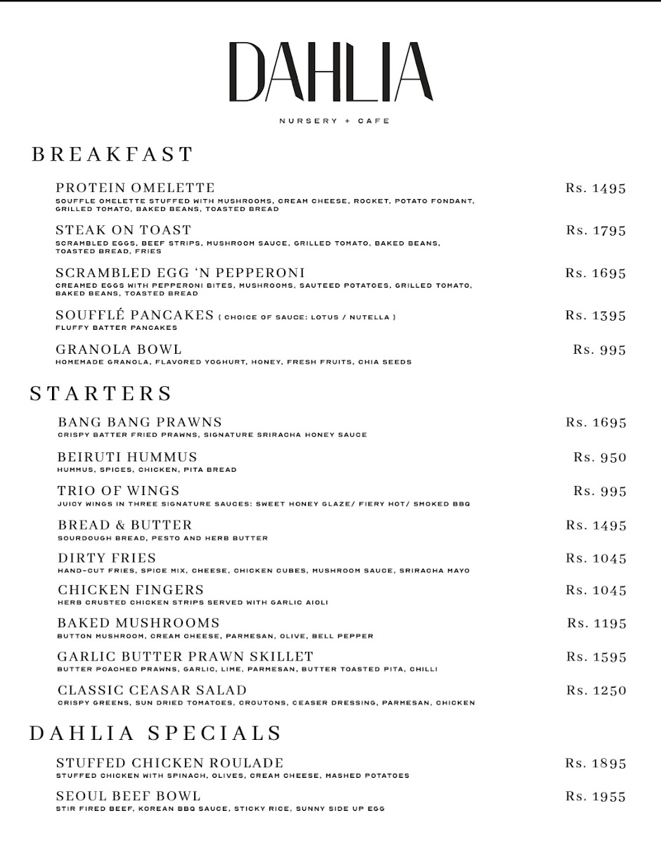 Welcome to DAHLIA Islamabad (Nursery Cafe), a delightful oasis nestled in the heart of Islamabad. More than just a cafe, it offers a unique dining experience surrounded by lush greenery, creating an organic and refreshing atmosphere. The cozy yet vibrant ambiance perfects a late breakfast or a relaxing dinner.